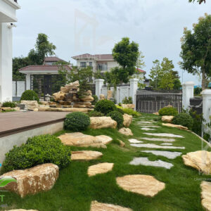 Những phiến đá có kích thước và kiểu dáng ngẫu nhiên. Chúng được sắp xếp tạo thành một lối đi độc đáo từ cổng vào đến trong nhà mà không làm mất dáng vẻ vốn có ban đầu.