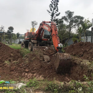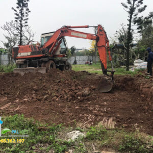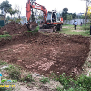 Quá trình đào đất đo đạc tạo hình cho hồ koi.