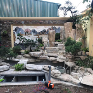 Quá trình thi công hồ cá Koi được hoàn thiện từng viên đá