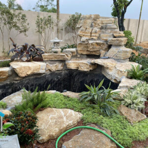 Cùng với việc hoàn thiện hồ Koi, các cây tiểu cảnh đã được cố định vị trí.