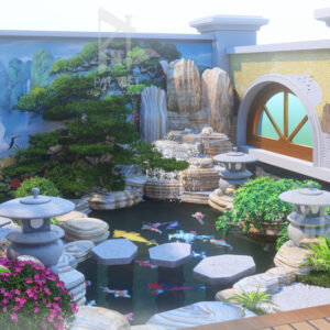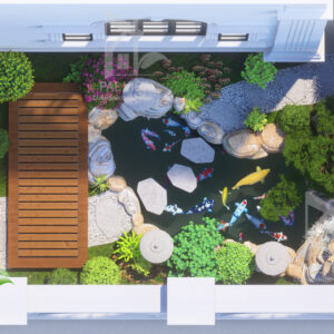 Cùng xem phương án thiết kế Hồ cá Koi sân vườn biệt thự này nhé!
