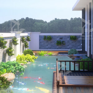 Thông qua các trao đổi sơ bộ giữa hai bên, chủ nhà muốn một không gian sân vườn có hồ Koi,không gian vườn rau,vườn cây và gara đỗ xe. Phương án hồ Koi có không gian ngồi uống trà ngắm cảnh bằng sàn nhựa giả gỗ bền bỉ. Không gian sân vườn là tổ hợp có sự hài hòa giữa con người,thiên nhiên.