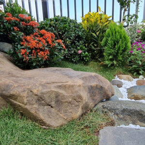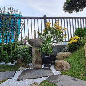 Những tảng đá vừa làm không gian thêm gần gũi thiên nhiên vừa có thể chăm sóc những cây hoa, tiểu cảnh rất thuận lợi.