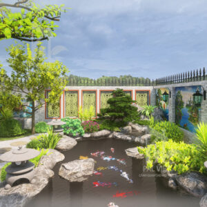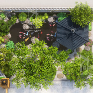Trên đây là những hình ảnh 3D đặc sắc nhất của dự án thiết kế hồ Koi có chòi nghỉ. Cảm ơn anh Bình đã tin tưởng lựa chọn dịch vụ thiết kế của Pal Việt.